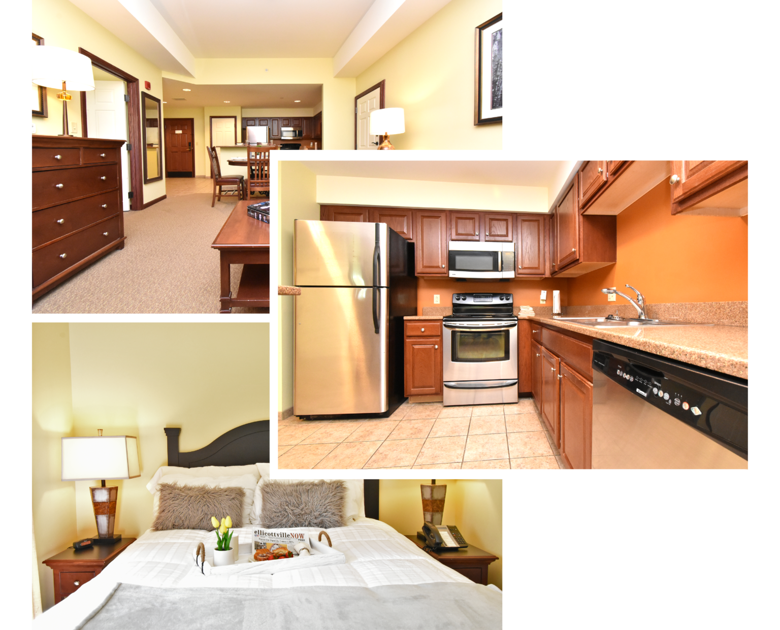 - Attached Studio Hotel Room with Queen Bed, Queen Sofa Sleeper (with pillow top mattress), and TV/DVD Player.
